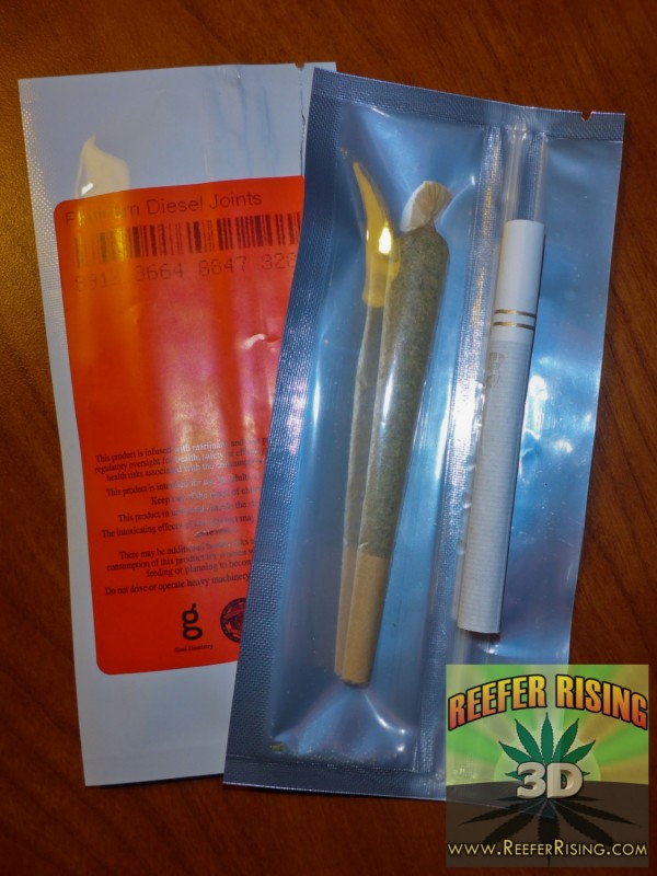Platinum Diesel pre-rolled joint from Good Chemistry (with cigarette for size comparison). goodchem.org